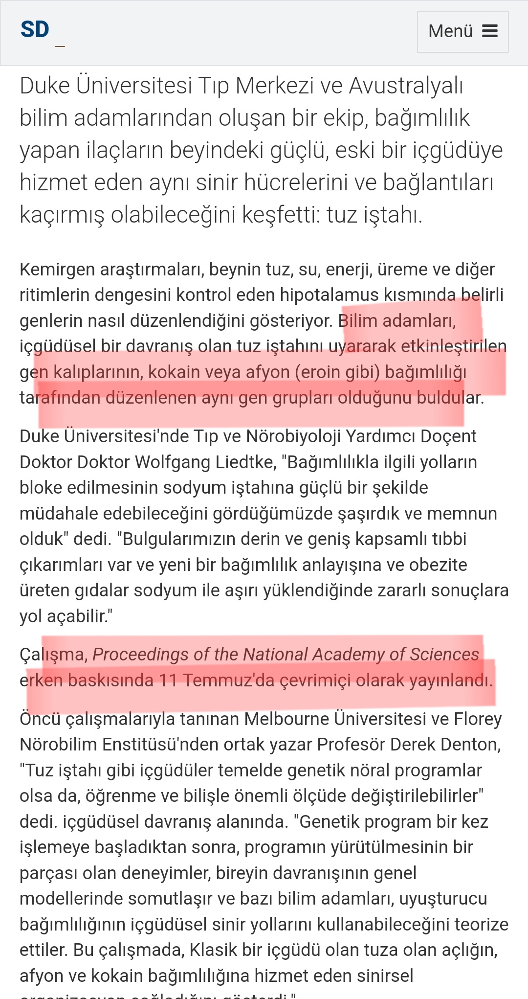 Çin tuzundaki (Mono”sodyum” Glutamat) gibi yediğimiz yemekten “beyinsel olarak” daha yüksek haz alıyoruz. Bu yemeğe hafif şeker ve yağ da eklenince beynimizde adeta kokain alımına benzer bir tepkime gerçekleşiyor. Bu da gıda endüstrisinin tam aradığı şey (fast food mesela) Bu durum elbette çift yönlü bir zarar veriyor. Hem sodyum, şeker ve yağın bir arada bulunduğu fast food gibi sağlıksız yemeklere bağımlılık arttığı için obezite, diyabet, hipertansiyon ve diğer metabolik hastalıklar artıyor hem de “modern” tarım “sayesinde” mineral oranı son derece azalmış olan topraktan bitkiler yoluyla gerekli mineralleri alamayan insanoğlunun kendisi için gerekli minerali doğal tuz yoluyla da alması engelleniyor.Bu da ilaç sektörüne daha çok müşteri yaratıyor. Gıda, tarım ve ilaç sektörü kol kola tıkır tıkır çalışıyor.