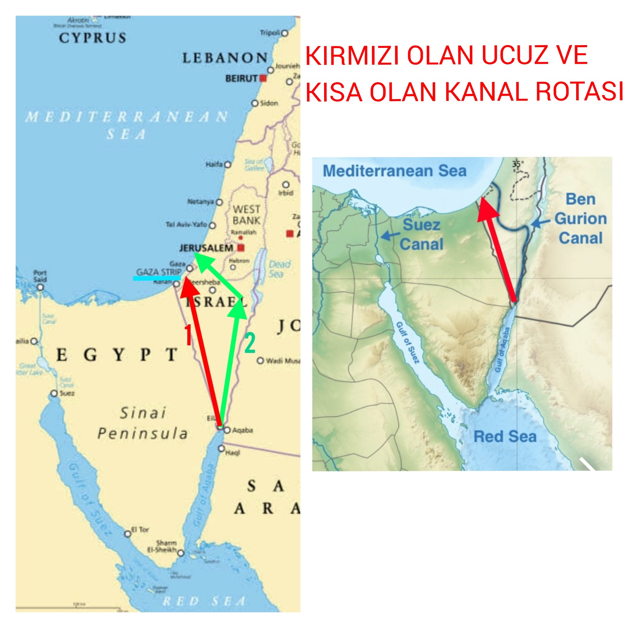 Arap-İsrail savaşından sonra Mısır’ın tek hak sahibi olarak ele geçirdiği Süveyş kanalına alternatif yeni bir kanal yapacaklar. Gazze’nin ortasından geçen ve Kızıldeniz’i Akdeniz’e bağlayan Süveyş kanalına paralel bir kanal bu. İsmi bile belli: Ben Gurion Kanalı.