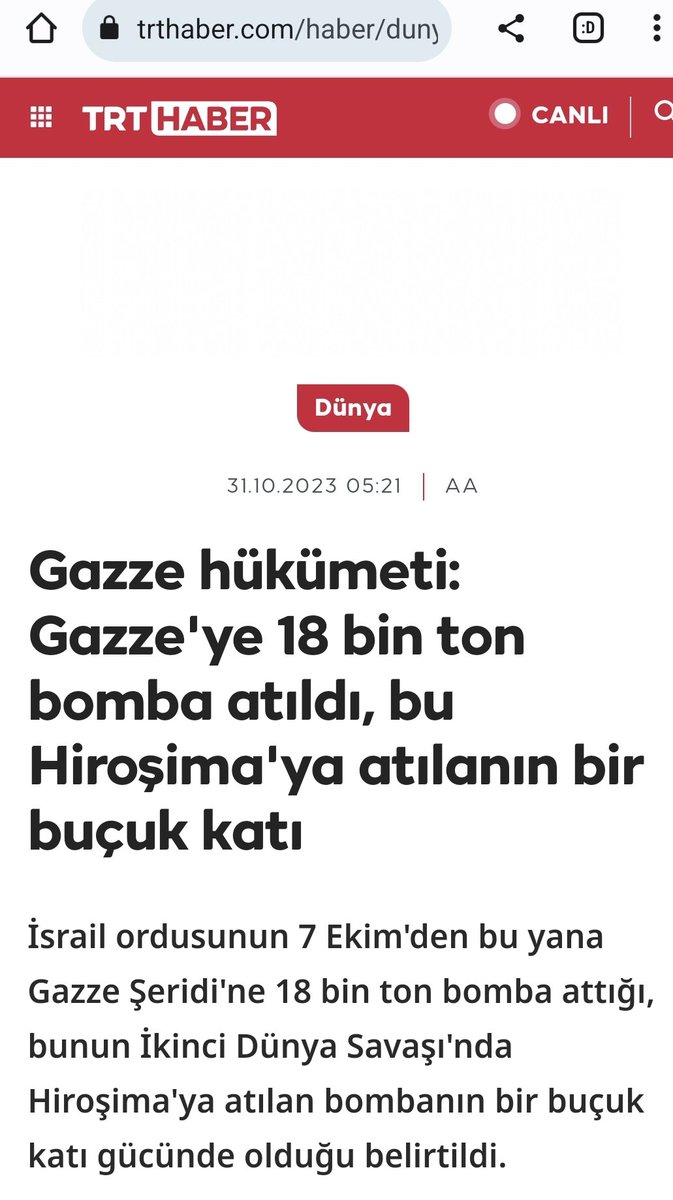 Uluslararası basında son günlerde Gazze’ye insafsızca atılan bombalarının toplam gücünün “Hiroshima’ya” atılan bombaların toplam gücüyle kıyaslanıyor olması oldukça manidar.