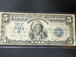 | Görsel: Üstünde bir Amerikan yerlisinin (Kızılderili) bulunduğu ilk dolar, 5 gümüş sertifika. (1899) |